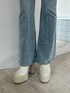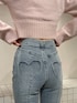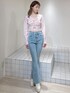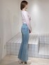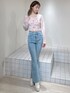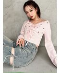 【トップス】お花の刺繍が可愛らしい春っぽいニットです♡コンパクトなサイズ感のショート丈なので、ハイウエストのボトムスと合わせていただくのがおすすめです!インするのは難しいと思います。 【デニム】ポケットのハートデザインが可愛らしいフレアデニムです♡162cmでSサイズを着用しており、丈は丁度良かったです!ゆとり持って履くより、ピタッと履いた方がヒップも上がって見えて、フレアデニムのシルエットも綺麗に強調できます◎ 【ブーツ】後ろのリボンは取り外し可能です!クリップのように差し込むようになっているので、簡単に取り外せます!履いてるうちに、徐々に柔らかくなる生地です。13cm(Lは13.2cm)ヒールですが、ソールは4.8cmと傾斜が少ないようになっているので、痛くなりにくいです◎