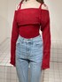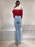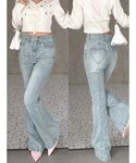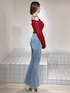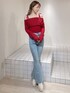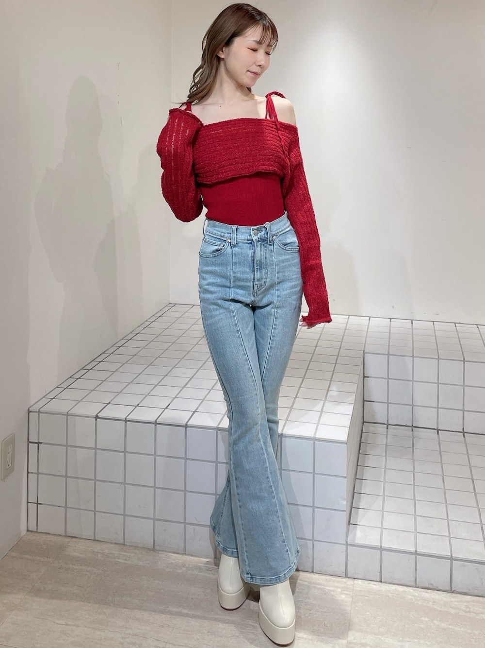 【デニム】ポケットのハートデザインが可愛らしいフレアデニムです♡162cmでSサイズを着用しており、丈は丁度良かったです!ゆとり持って履くより、ピタッと履いた方がヒップも上がって見えて、フレアデニムのシルエットも綺麗に強調できます◎ 【トップス】バレンタインにちなんだ真っ赤なニットです♡キャミの上にニットを重ねることによって、オフショルトップスに仕上がります!肩紐のリボンは結び直せます◎インナーは肩紐が気にならないように、ストラップの無いタイプがオススメです! 【ブーツ】後ろのリボンは取り外し可能です!クリップのように差し込むようになっているので、簡単に取り外せます!履いてるうちに、徐々に柔らかくなる生地です。13cm(Lは13.2cm)ヒールですが、ソールは4.8cmと傾斜が少ないようになっているので、痛くなりにくいです◎