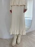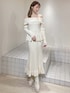 【トップス】ペプラムでお腹周りをカバーできるニットトップスです♡ミニスカやパンツスタイルとの着回しもオススメです!肩はオフショルで着ていただくようになります◎ 【スカート】マーメイドのニットスカートです♡丈は少し長めなので、小柄な方やヒールを履かない方はまくって履いていただくか、ウエスト位置を上げて履いていただくのがオススメです◎私は162cmで丈は大丈夫でしたが、1回まくってみました!周りからもバレにくいです◎ 【ブーツ】リボンは取り外し可能です!クリップのように差し込むようになっているので、簡単に取り外せます!履いてるうちに、徐々に柔らかくなる生地です。13cm(Lは13.2cm)ヒールですが、ソールは4.8cmと傾斜が少ないようになっているので、痛くなりにくいです◎