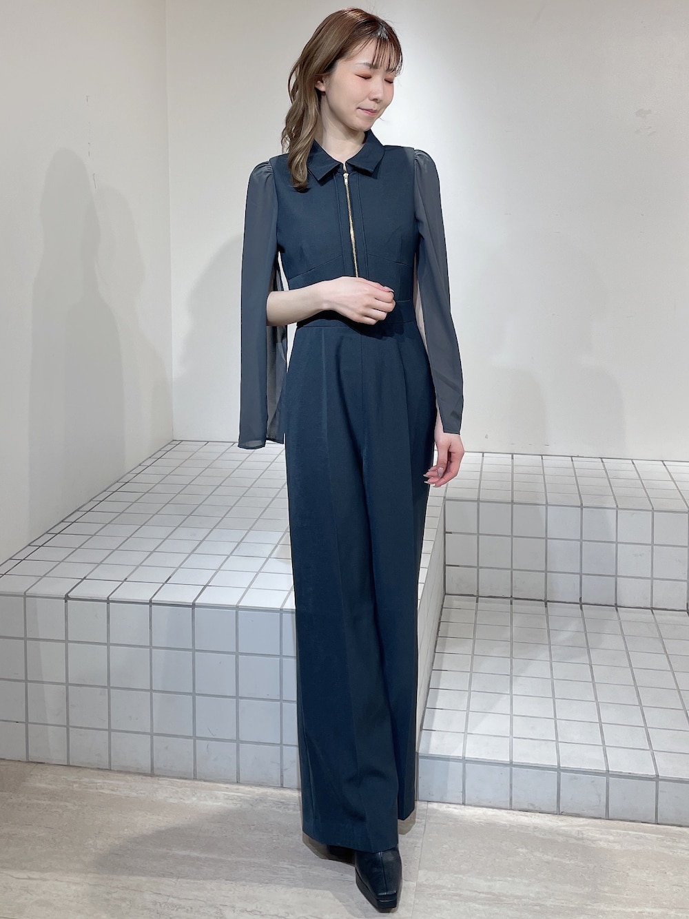【コンビネゾン】去年も大人気のコンビネゾンが復活です♡今年はS,Mのサイズ展開になっており、162cmでMサイズを着用してみました!丈は長めで、ヒールを履かないと地面についてしまいそうなぐらいです。肩紐は見えないので、気にせず着ていただけます!胸元のファスナーの閉め具合は、お好みで大丈夫です◎ 【ブーツ】後ろのリボンデザインが可愛いブーツです♡スキニーの上に重ねて履くこともできます!ピンヒールでもぐらつき感が少なく、ヒール初心者さんにも是非履いていただきたいアイテムです!23.5cmの私はMサイズが丁度良かったです◎