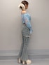 【トップス】memorif×RESEXXYコラボレーションアイテムです♡フリーサイズですが、短めの丈感でコンパクトなサイズ感です!手首がキュッとしているので、腕周りもスッキリ見せてくれます◎ 【デニム】大バズりのリボンデニムです♡162cmでXSを着用してみました!丈はヒールを履かなくても、引きずらずに着用できます!春夏に明るい色味のトップスと合わせると、アイスブルーはより相性良くてオススメです♡ 【ブーツ】後ろのリボンは取り外し可能です!クリップのように差し込むようになっているので、簡単に取り外せます!履いてるうちに、徐々に柔らかくなる生地です。13cm(Lは13.2cm)ヒールですが、ソールは4.8cmと傾斜が少ないようになっているので、痛くなりにくいです◎ 【ヘアアクセサリー】大きめのリボンが存在感たっぷりで可愛らしいバレッタです♡ポニーテールやハーフアップして付けるのも可愛いです♡