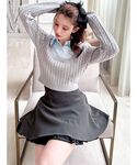 moeka(RESEXXY)のニット/セーター「シャツドッキングケーブルニットトップス」を使ったコーディネート