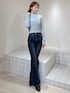 【トップス】襟付きのシャツがドッキングされたデザインです!少しショート丈なので、インせずにボトムスに重ねて着ていただくのがオススメです!寒い時期は、ヒートテック合わせもできます!春に向けた薄手のケーブルニットです◎ 【デニム】ポケットのハートデザインが可愛らしいてフレアデニムです♡大人気のカットアウトリボンデニムパンツと似ているシルエットです!162cmでMサイズを着用してみました!丈はヒール無しだと、かなりギリギリの長さです。小柄な方は裾上げや、ヒール、厚底と合わせていただくのがおすすめです◎ 【ブーツ】後ろのリボンデザインが可愛いブーツです♡スキニーの上に重ねて履くこともできます!ピンヒールでもぐらつき感が少なく、ヒール初心者さんにも是非履いていただきたいアイテムです!23.5cmの私はMサイズが丁度良かったです◎
