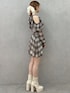 【ワンピース】トレンドのアメスリデザインです♡ウエストがしっかりくびれているフレアワンピースなので、着膨れ感抑えられています◎肩紐は見えるので、ブラトップなどストラップのないバージョンがオススメです! 【ヘアアクセサリー】大きめのリボンが存在感たっぷりで可愛らしいバレッタです♡ポニーテールやハーフアップして付けるのも可愛いです♡ 【ブーツ】後ろのリボンは取り外し可能です!クリップのように差し込むようになっているので、簡単に取り外せます!履いてるうちに、徐々に柔らかくなる生地です。13cm(Lは13.2cm)ヒールですが、ソールは4.8cmと傾斜が少ないようになっているので、痛くなりにくいです◎