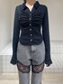 【トップス】バストにギャザーが寄った、細身のシルエットのデザインです♪丈はインしたり、そのまま着るのもオススメです◎ウエストにかけてシュッとくびれた形なので、華奢みえします♡ 【デニム】大好評のカットデザインシリーズから、レースを使用した色気の漂うデザインです♡162cmでMサイズを着用しました!丈は足首下で、ひざ下も長く見える嬉しい長さです◎ 太もも周りが全面レースになっているので、太もものハミ肉が気になりにくくなりました! 【ブーツ】2wayで履いていただけるクシュクシュッとしたルーズなブーツです♡クシュクシュ部分を外すことができ、合皮素材のスポッと履けるミュールのようになります◎23.5cmでMサイズが丁度良かったです! 【ヘアアクセサリー】大きめのリボンが存在感たっぷりで可愛らしいバレッタです♡ポニーテールやハーフアップして付けるのも可愛いです♡