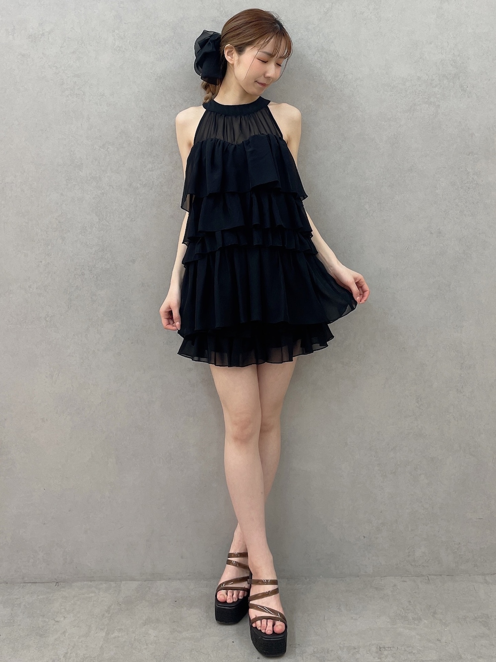 【トップス】流行りのアメスリデザインです♡肩紐は見えるので、ブラトップ系がオススメです!162cmでヒップにかかる長さの丈感になっております◎パンツ系と着回しもオススメです♪ 【スカート】インナーパンツ付きのフリルスカートです!フリルが目立って、フェミニンな可愛らしい印象になっております♡シアーを重ねた素材なので、軽くて風通しも抜群です! 【ヘアアクセサリー】大きめのリボンが存在感たっぷりで可愛らしいバレッタです♡ポニーテールやハーフアップして付けるのも可愛いです♡ 【サンダル】今年も発売♡毎年大好評でスタッフも購入している厚底サンダルです♪23.5cmの私はMサイズでぴったりです!高低差はかなり緩やかなので、長時間履いてても痛くなりにくいです◎