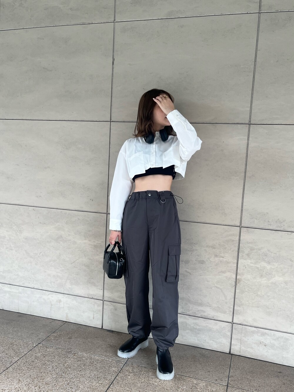 【shirt】2wayで着れるシャツ。丈感を変えることができ、トップスとしても羽織としても使えます🪐今回はショート丈でインナーをレイヤードしました♪ 【cargo pants】リアルバイカーゴパンツ✨ゆるゆる過ぎずレディライクにも着れるよう広がり過ぎないシルエット👤ウエストと裾の丈感は絞れるので調節できます🌪️ 【boots】ガムソールがポイントのブーツ♡"カジュアルなスタイルに合わせると可愛い!普段24.5cmで24.5cm着用 【bag】ベーシックなクロコ押しの超ミニボストンバッグ👜見た目以上に収納力があるので普段使いできます♡