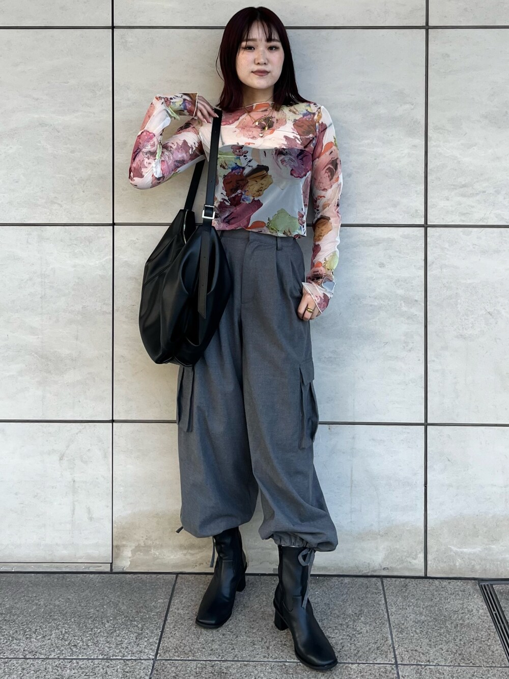 清水夢乃(MURUA)のカーゴパンツ「ウールライクカーゴパンツ」を使ったコーディネート