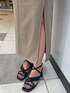 休日コーデ♡ 【ワンピース】バックオープンやスリットが入っているので、カジュアルになりすぎず綺麗めが好きな方にも着やすいスウェットワンピースです♡ ノースリーブなのに、幅が広めで少し外側に広がったデザインになっているので、 肩幅や二の腕が華奢見え効果抜群です♡ 【サンダル】丸いフォルムのヒールが横、後ろから見ても可愛く、ギャザーデザインが女性らしい1足です◎ クッション性もあるので、長時間履いていても疲れにくく安定感抜群のサンダルです♡