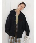 ゆったりサイズのデニムジャケットコーデ♪低身長でもあえてダボっと、ゆるっと着ていただくのが可愛いと思います!中にゆったりとしたスウェットやニットも着込んでいただけるので、春、秋、冬と長い期間着ていただけます!そして大人気ロゴルーズスウェットはデニム合わせももちろん可愛いのですが、シンプルなデザインなので、マーメイドスカートなどと合わせてMIXスタイルも楽しめます◎こちらのマーメイドスカートは程よいフィット感でマーメイドスカート独特の窮屈感もなく、サラッと履いていただけますよ◎