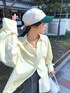 【シャツ】 スリーブとバックのギャザーがオシャレなシャツです♪ 生地感は柔らかくお尻が隠れるぐらいの丈感です◎ ギャザーは寄せなくても着れるので色々なコーデを楽しんでいただけます♪ 【パンツ】 ゆったりシルエットが大人な印象ですが カジュアルなトップス合わせで普段使いもできます◎ セットアップでも着用できるジャケットで、オケージョンスタイルでも着ていただけます♪ 152cmで丈感は床についてしまうので、 ヒール合わせがおすすめです◎ この時私はウエストを1つ折ってブーツ合わせをしました🙄 【キャップ】 NEW ERA×Ungrid コラボキャップ✨ 刺繍で施されたUngridの文字も可愛く、 カジュアルからレディまで幅広いスタイリングに合わせていただけます◎