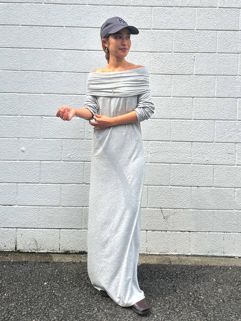 \大人ワンピコーデ/ Instagram☞@himeka_kawamura_ 【ワンピース】 生地感は柔らかく、程よくタイトなシルエットです☺︎ ショルダー部分の折り返しがヘルシーで女性らしい印象なので、キャップやスニーカー合わせも可愛いです◎