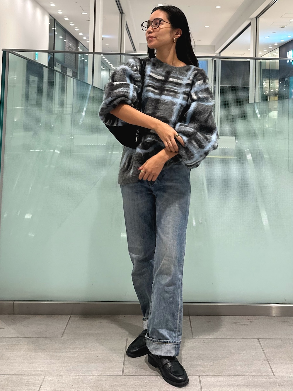 チェックニットコーデ🧶 Instagram→@himeka_kawamura_ 【ニット】 起毛がかかっているので1枚で存在感のあるニットです! お尻にかかる丈感で、ゆるっと着るのが可愛いです♡ 首元はあきすぎてないので安心です! 【デニム】 太すぎず細すぎず理想の形! 低身長さんはフラットシューズでも安心な丈感ですが、ロールアップしても素敵に履いていただけます◎ 一本は持っておきたい理想のデニムです! 【バック】 持ち手が長いので分厚めのニットの上からでも安心して肩にかけていただけます!