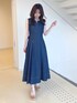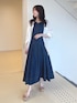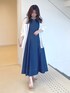 💙デニムワンピ💙 ・ワンピース→後ろのバックシャンがポイントなワンピース🎀 ウエストから裾に向かって広がるスカートでウエストをキュッと見せてくれます! インディゴのカラーはステッチデザインがポイントです!! シアーのシャツと合わせてカジュアルに着るのもおすすめです!😌