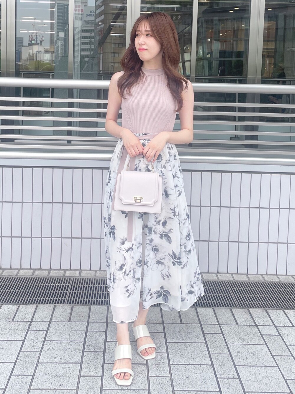 AMI(MERCURYDUO)のワンピース「フラワードッキングフレアワンピース」を使ったコーディネート
