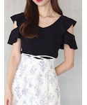 AMI(MERCURYDUO)のニット/セーター「マルチウェイストラップダブルラッフルニット」を使ったコーディネート