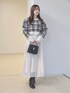 AMI(MERCURYDUO)のカーディガン/ボレロ「エンブロイダリーラメチェックシャギーカーディガン」を使ったコーディネート