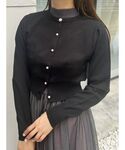 AMI(MERCURYDUO)のカーディガン/ボレロ「ビジューボタンニットカーディガン」を使ったコーディネート