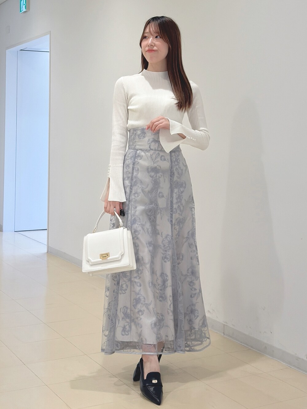 ・ニット⇒ →お袖のパールがポイントのニット🫧 袖はフレアスリーブでスリットもあるデザインでメリハリが出ます! シンプルなボトムスにも合わせやすいニットです!✨️ ・スカート⇒単色の刺繍が大人な雰囲気に🩵 ハイウエスト切替で足長効果抜群! バックレースなのでウエストを調節できます! オールシーズン使えるのが嬉しい!🤍 ・ミュール⇒ゴールドデザインがポイント! どんなお洋服にも合うアイテムです! 158cm/23.5cm スカート⇒Mサイズ ミュール⇒36 𝐈𝐧𝐬𝐭𝐚𝐠𝐫𝐚𝐦⇒@mercuryduo_ami