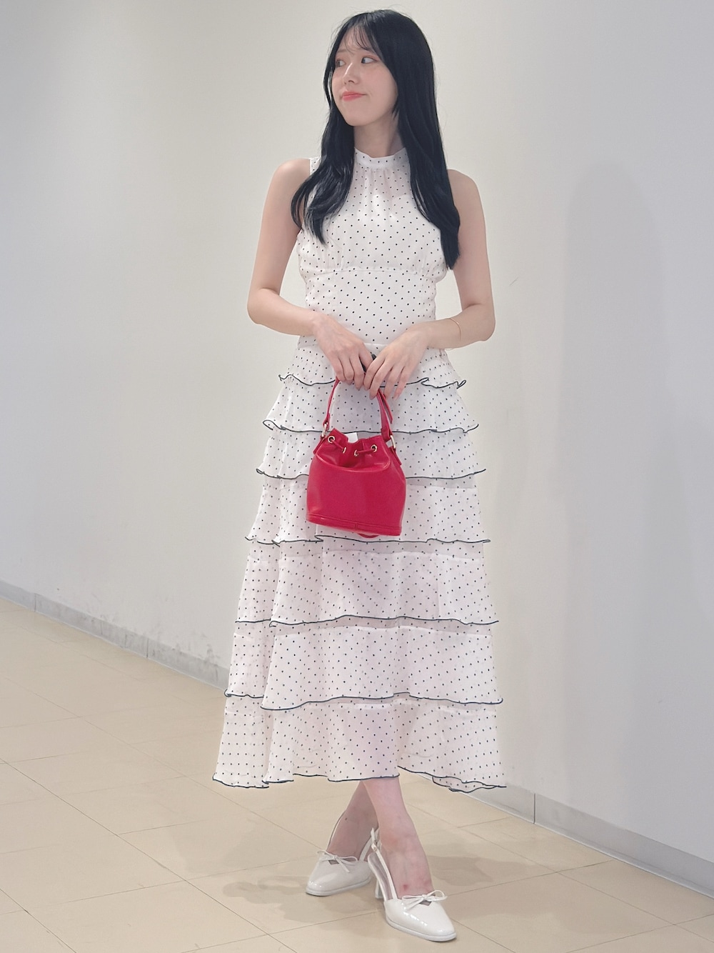 ・ワンピース⇒1枚で主役級のティアードワンピ🤍 ティアードはボリューム出すぎないデザインなので着やすいのがポイント! トレンドニュース感満載で着ていただけます🎀 ・パンプス⇒ リボンがポイント🎀🤍 主役級パンプスなのでカジュアルからフェミニンまで合わせやすいのが嬉しい! 158cm/23.5cm ワンピース⇒Sサイズ サンダル⇒36 𝐈𝐧𝐬𝐭𝐚𝐠𝐫𝐚𝐦⇒@mercuryduo_ami