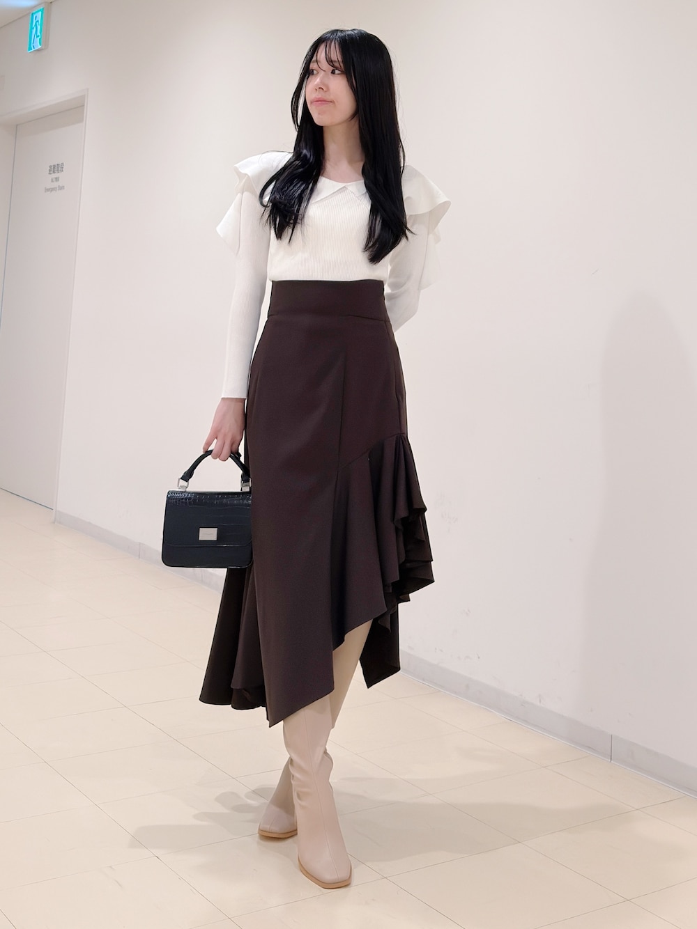 ・ニット⇒デコルテ部分を綺麗に見せてくれるニット🧵 ラッフルデザイン何で華奢見せしてくれます! ・スカート⇒1枚で主役級のスカート! アシンメトリーなラッフルデザインがポイント! ロングブーツ合わせで大人コーデに🤎 ・ブーツ⇒ 秋冬のマストアイテム! どんなお洋服にも合うロングブーツ! 美脚効果抜群です! 158cm/23.5cm スカート⇒Sサイズ ブーツ⇒36 𝙄𝙣𝙨𝙩𝙖𝙜𝙧𝙖𝙢⇒@mercuryduo_ami