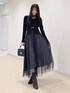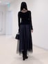 AMI(MERCURYDUO)のワンピース「ビットニットドットチュールドッキングワンピース」を使ったコーディネート