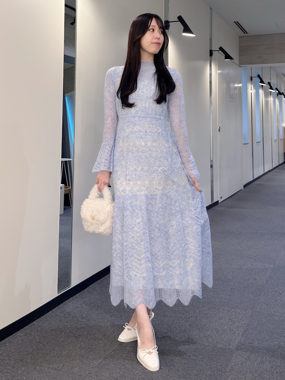 AMI(MERCURYDUO)のワンピース「モヘヤニットスカシアミワンピース」を使ったコーディネート
