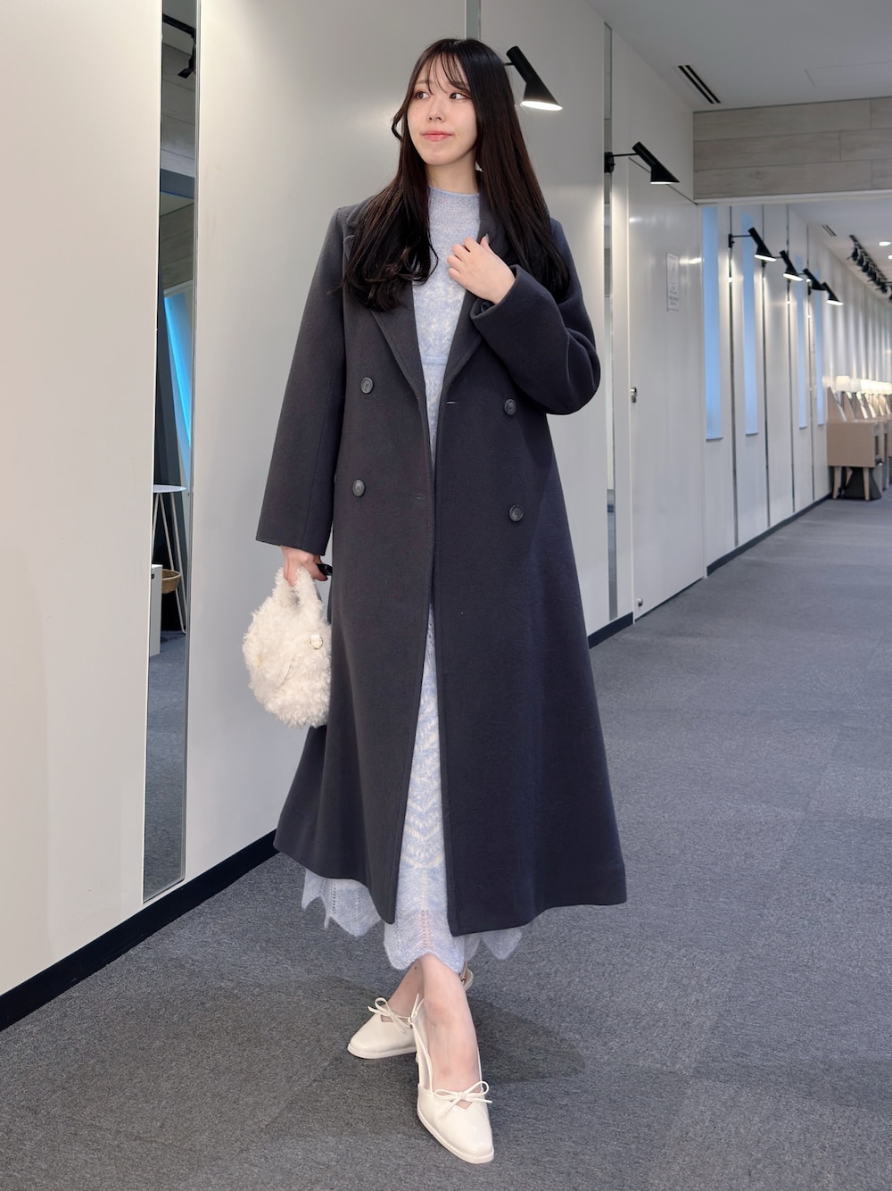 ・コート⇒ 毎年大人気のウールコート🧥 約90%のウールが入っていてすごく暖かい!! さらっと織れて、しっかり分厚いニットも入る優秀コート!! 軽いので着ていても楽なのが嬉しい! グレーのカラーは大人な雰囲気に🩶 ・ワンピース⇒ モヘヤの透かし編みデザインのワンピース✨️ トレンド感満載のアイテムです! ウエスト切り替えもあるのでスタイル良く着ていただけます! ・パンプス⇒ リボンがポイントのパンプス🎀 コーデのポイントになります🤍 158cm/23.5cm コート⇒Sサイズ ワンピース⇒Sサイズ パンプス⇒36 𝙄𝙣𝙨𝙩𝙖𝙜𝙧𝙖𝙢⇒@mercuryduo_ami