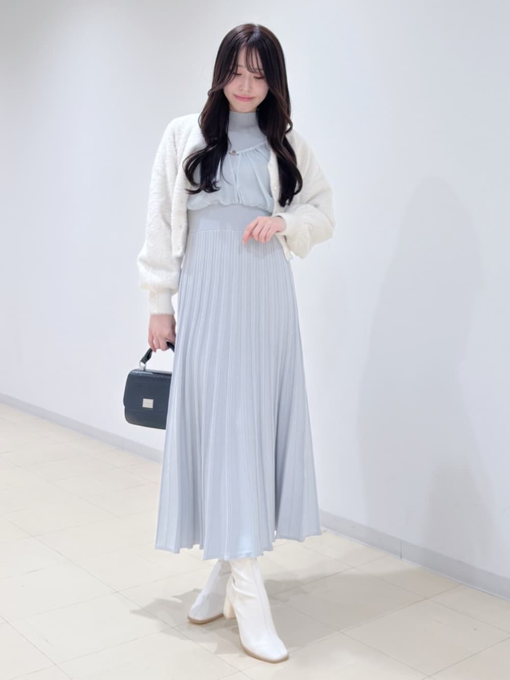 ・ワンピース⇒ シアーブラウスとニットワンピがドッキングされたワンピ🩵 着るだけでスタイルアップ効果抜群!! ハイウエスト、リブなのでスッキリみせてくれます✨️ 春まで着られるのがうれしい!🌸 ・カーディガン⇒肌触りの良いふわふわのニットお家で洗えます!🫧 短丈なのでどんなボトムスにも合うアイテムです! カーデとしてもトップスとしても使えます🤍 ・ブーツ⇒ 定番のブーツがスクエアデザインになって今年も登場! ヒールはホログラムのようなデザインでキラッと光るのが可愛い🤍 158cm/23.5cm ワンピース⇒Mサイズ ブーツ⇒36 𝙄𝙣𝙨𝙩𝙖𝙜𝙧𝙖𝙢⇒@mercuryduo_ami