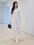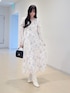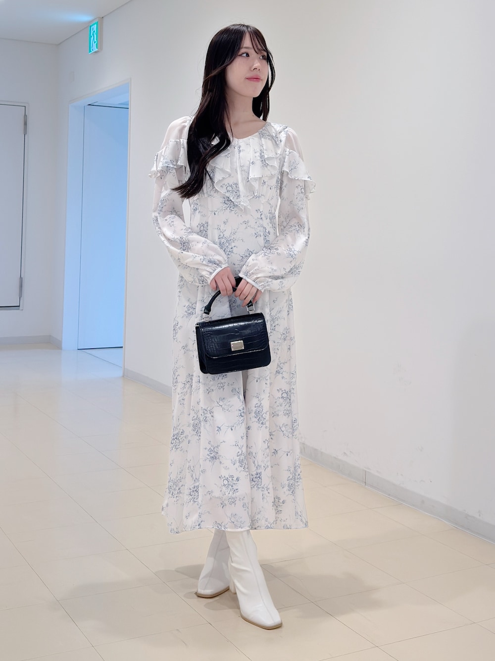AMI(MERCURYDUO)のワンピース「ラッフルカラーパターンワンピース」を使ったコーディネート
