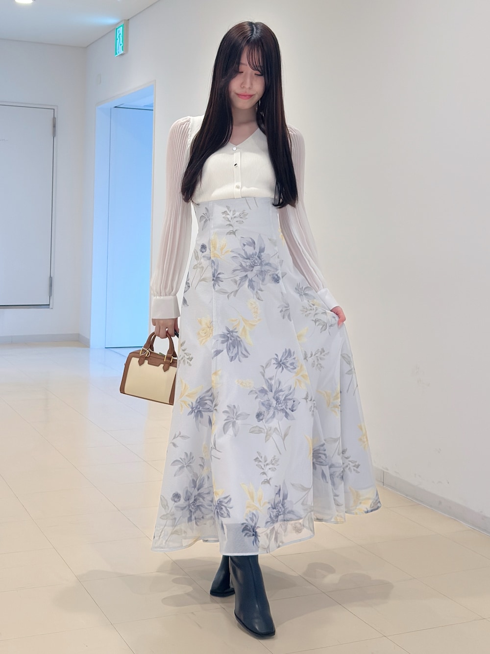 ・ニット⇒カーデ風デザインのニット🤍 リブニットでスッキリ見え!✨️ 異素材の袖で抜け感が出るデザイン! ・スカート⇒1 枚で華やかなスカート🌼 ハイウエスト、バックレースでウエスト調整可能! シンプルなニットとの相性も抜群です! ・ブーツ⇒ヒール部分のホログラムデザインがポイント🫧 安定感があり歩きやすく、疲れないのが嬉しい! 158cm/23.5cm スカート⇒Mサイズ ブーツ⇒36 𝙄𝙣𝙨𝙩𝙖𝙜𝙧𝙖𝙢⇒@mercuryduo_ami