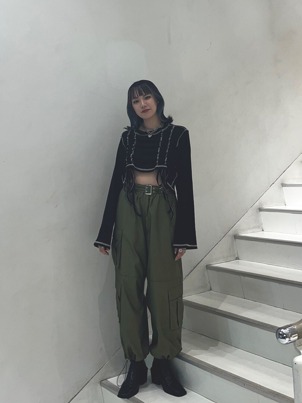 【tops】 ギャザーをしぼってお好きな丈感で着ることが出来るトップス!jouetieの定番アイテムになりつつあるアイテムです。 ボトムスに合わせて丈感を調整できるので 何にでも合わせられる万能アイテムかつ、スタイルがよく見える天才的アイテム✨ 後ろはギャザーがなく背中まで見せずに着ることが出来るので程よい肌見せが出来ます。 【pants】 今年流行りのカーゴパンツ! 生地感はナイロン素材で、おしりのシルエットを拾いすぎず、大きくなり過ぎない落ち感のある素材なのでスタイル抜群に見えます。 またハイウエストになっているのでショート丈と合わせても、インしてきても脚長効果が出る最強ボトムです!