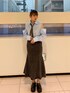 ◎シャツ 今流行りのネクタイがセットになったシャツです✨ 1枚にトレンドがぎゅっと詰まったアイテムです!薄手のシャツなので1枚でサラッと着ても、羽織としても使えるショート丈のシャツでボトムスは何でも合わせやすい! キャミワンピと合わせても可愛いです💗 肩のあき具合が大きすぎず程よい肌見せが出来ます✨ ◎スカート ローライズのデニムスカート🗯 大人ぽくも今どきのy2kの感じでもどちらでも使えるスカート! ベルトで上げて腰上で履いてもかわいいし、ローライズでグランジぽく履いてもかわいいです! 普段JouetieのボトムスでMサイズの方だと少し大きめサイズなのでベルト合わせがオススメです!