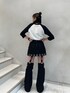 tops jouetie定番のラグラントップス! 大きすぎず小さすぎずのとても着やすいシルエットです。しっかり伸びるので楽に着やすい1枚です✨1枚で主役級のデザインです! pants 流行りのy2kスタイル! 中がスカパンになっているので安心して着ていただけます🫶🏻 取り外し可能なのでスカパンだけで着ても良し○レッグウォーマーだけ使っても良しの使い回し自由自在のデニムです! スカパンは少しピタッとしたシルエット!