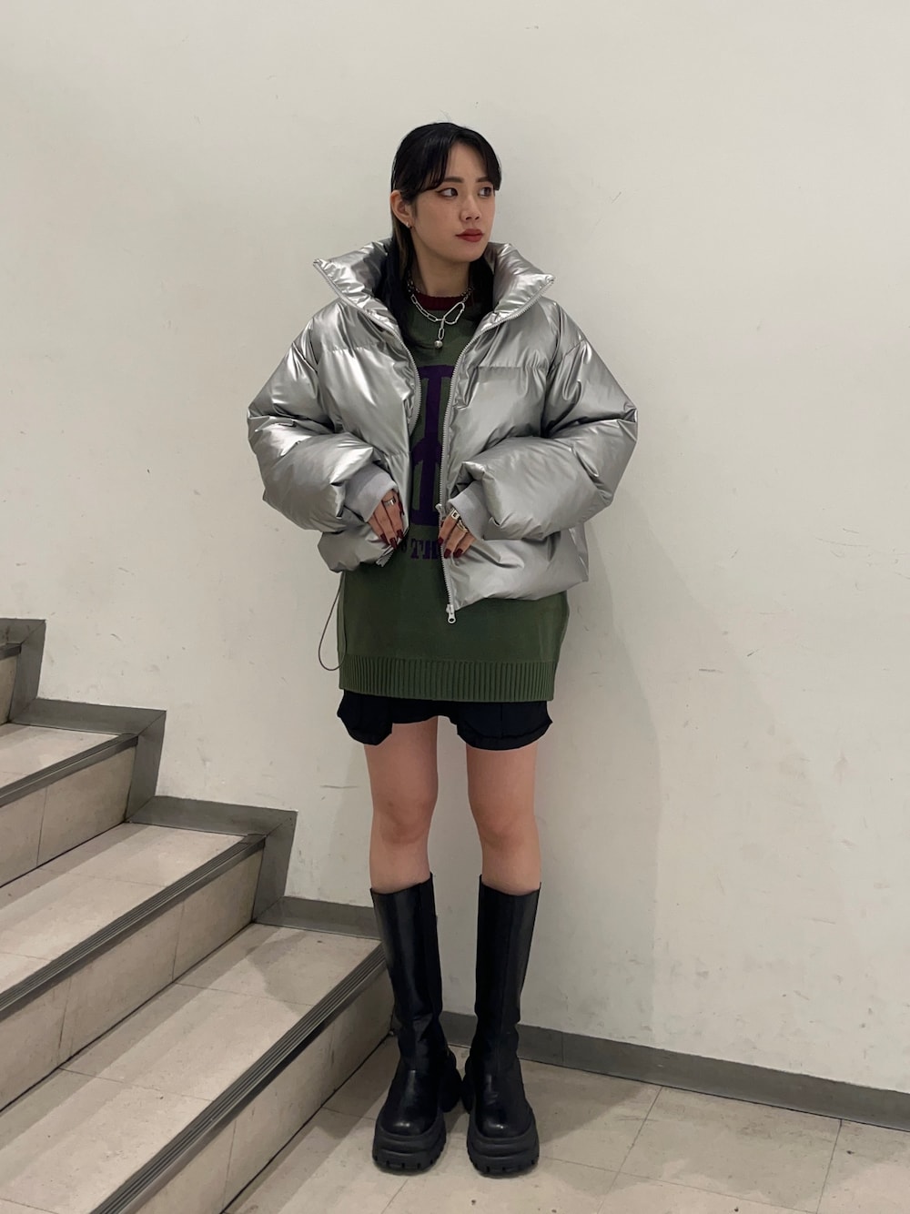 NAGISA(jouetie)のダウンジャケット/コート「メタリックダウンライクジャケット」を使ったコーディネート