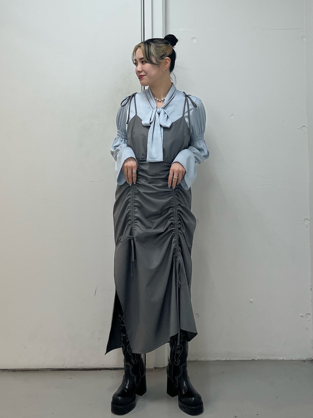 NAGISA(jouetie)のワンピース「シャーリングキャミワンピース」を使ったコーディネート