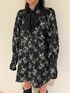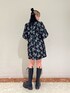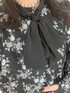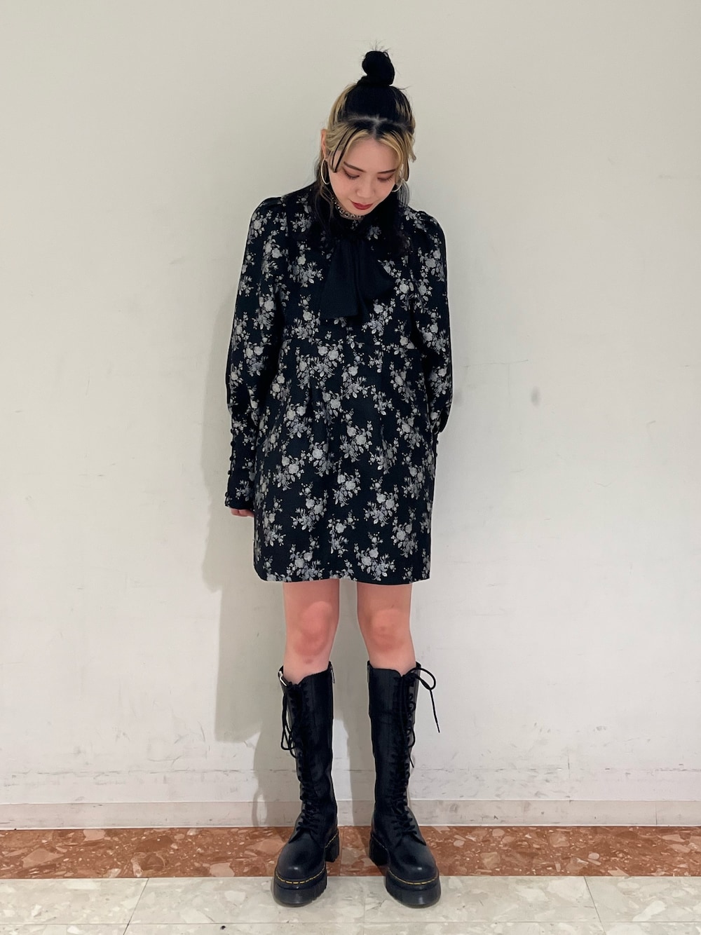 シルエットがかわいい花柄ワンピース❁ 肩のふんわり感と袖がかわいい! 中にjouetieのリボンタイブラウスを 合わせて首元からリボンを出しました🎀 どのワンピースやトップスにもリボンを付け足せるので着回し抜群です!