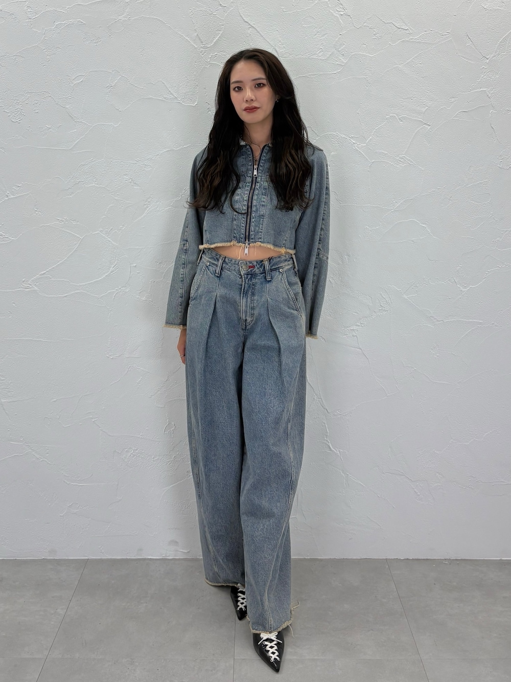 NAGISA(jouetie)のデニムジャケット「【something×PosTokyo】ZIP BLOUSON/ジップデニムジャケット」を使ったコーディネート