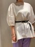 季節問わずお使いいただけるシンプルブラウス◎ふんわりしたお袖が女性らしいシルエットを演出!長めのお丈で気になるお尻周りをカバーできます。ベルトでウエストマークすることでよりオシャレ度もUP^^お仕事着として選ばれる方も多く、オンオフ兼用を兼ね備えたアイテムです!パキッとしたパープルのテーパードパンツを合わせることでシンプルながらもオシャレ感のあるコーディネートに◎