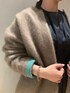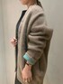ラクーンカーディガン、どの色を選ぼうか迷われている方にはベージュがオススメ◎落ち着いたベージュのお色味はお洋服を選ばずに合わせていただけます!お袖を折り返すとアクセントになるグリーンが映えます^^普段カジュアルテイストがお好きな方はベージュを選ばれる方が多いですが、シックなワンピースにさらっと羽織っていただくのもオススメです!