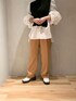 【トップス】ニット×ブラウスのセットアイテム◎単品でも着回し可能です。ブラウスはお袖のボリュームがポイント。【ボトムス】カラーを取り入れるならパンツがオススメです◎さらりとしたお素材のワイドパンツは履き心地も良くデイリー使いにピッタリ。155cmで01サイズ着用。