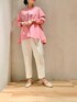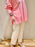 【ブラウス】前後で丈感がかわるフレアシルエットブラウス。お首元はVネックでスッキリとした印象に◎カラバリも豊富な4色展開で今回着用のPNKやICEはコーディネートの差し色に、WHT、BLKはベーシックなのでオフィスカジュアルにもぴったりです!【パンツ】太ももと脚周りに少しゆとりがあるハイウエストパンツ。センタープレスで横に広がり過ぎず、裾は少し細くなるデザインです◎155cm01サイズ着用。