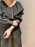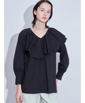 【ブラウス】ELENDEEKらしいフレア&プリーツがあしらわれたブラウス◎甘めになりがちなフリルブラウスも、アシンメトリーなデザインでスタイリッシュにお召しいただけます。【スカート】フレアシルエットがきれいなタックスカート。モードカジュアルがお好きな方にはBLKがオススメ◎155cm01サイズ着用です。
