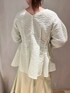 【アウター】ほどよいボリュームがかわいいショートコート。カジュアルにもエレガントにも使えるマストアイテムです◎【ブラウス】ジャガード素材のデザインブラウス。ふんわりとしたシルエットにナチュラルなくびれのウエストラインで女性らしい印象に◎【スカート】アシンメトリーなマーメイドスカート。155cm01サイズ着用。