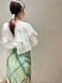 【トップス】お首まわりのアシメフレアデザインがポイントのブラウス◎Vネックで甘くなりすぎず、上品な雰囲気でお召しいただけます。インスタイルもオススメです!【ボトムス】チェック×プリーツ柄の主役級スカート。透け感のある軽いお素材なのでパキッとし過ぎず柔らかな印象に。カラーアイテムが苦手な方にもオススメです◎155cm01サイズ着用。