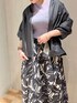 【トップス】前後2WAYでブラウス、アウターの2パターンで着れるトップス◎襟ぐりのタックとギャザーでほどよいボリューム感。着回し力抜群の優秀アイテムです!【ボトムス】春夏らしいリーフ柄のスカートはコーディネートの主役に◎ハイウエストでメリハリが出る上に、ウエスト部分は後ろがゴムなのでインスタイルも楽々。155cm01サイズ着用。