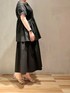 【トップス】凹凸感のあるお素材のチュニック。胸下の切り替えでメリハリが出ます◎長めの着丈とフレアシルエットで腰まわりをカバー。パンツやタイトスカート合わせもオススメです。【ボトムス】トップスと同素材のフレアスカートをセットアップで着用。ウエストの後ろはゴム仕様でインスタイルも楽々。155cm01サイズ着用。