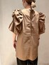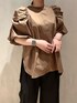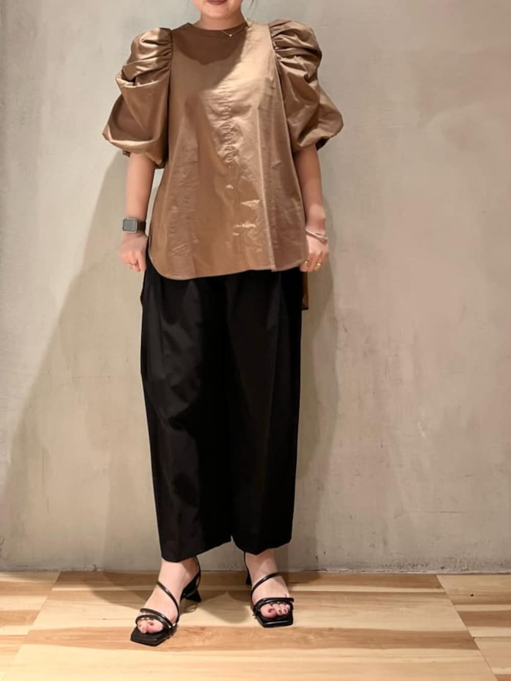 【トップス】ボリュームのあるバルーン袖がポイントのブラウス。お首が詰まったタイプですが、後ろ側にファスナーがあるので着脱簡単◎お丈はお尻がしっかり隠れる安心丈。深めのスリットで前だけインしてもかわいいです!【ボトムス】丸みのあるシルエットのパンツ。ウエストの後ろ側がゴム仕様なので楽ちんな履き心地。155cm01サイズ着用。