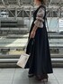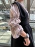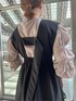 【ワンピース】バックスタイルのベルトデザインがポイントのジャンパースカート。ウエストの切り替えが高めなので着痩せ効果抜群◎インナーはニットやブラウス、カットソーを合わせるとオールシーズンお召しいただけます◎155cm02サイズ着用。【ブラウス】ほどよい透け感で着心地◎お袖のギャザーのボリュームが女性らしい印象に。