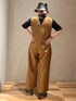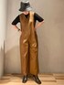 【コンビネゾン】ストンと落ちるシルエットのコンビネゾン。インナーにはリブニットやシアートップスをレイヤードするのがオススメ。シワになりにくいお素材なのもうれしいポイント◎付属のレザーベルトでウエストマークすると雰囲気も変わりいろいろなシーンで楽しめます!155cm01サイズ着用。